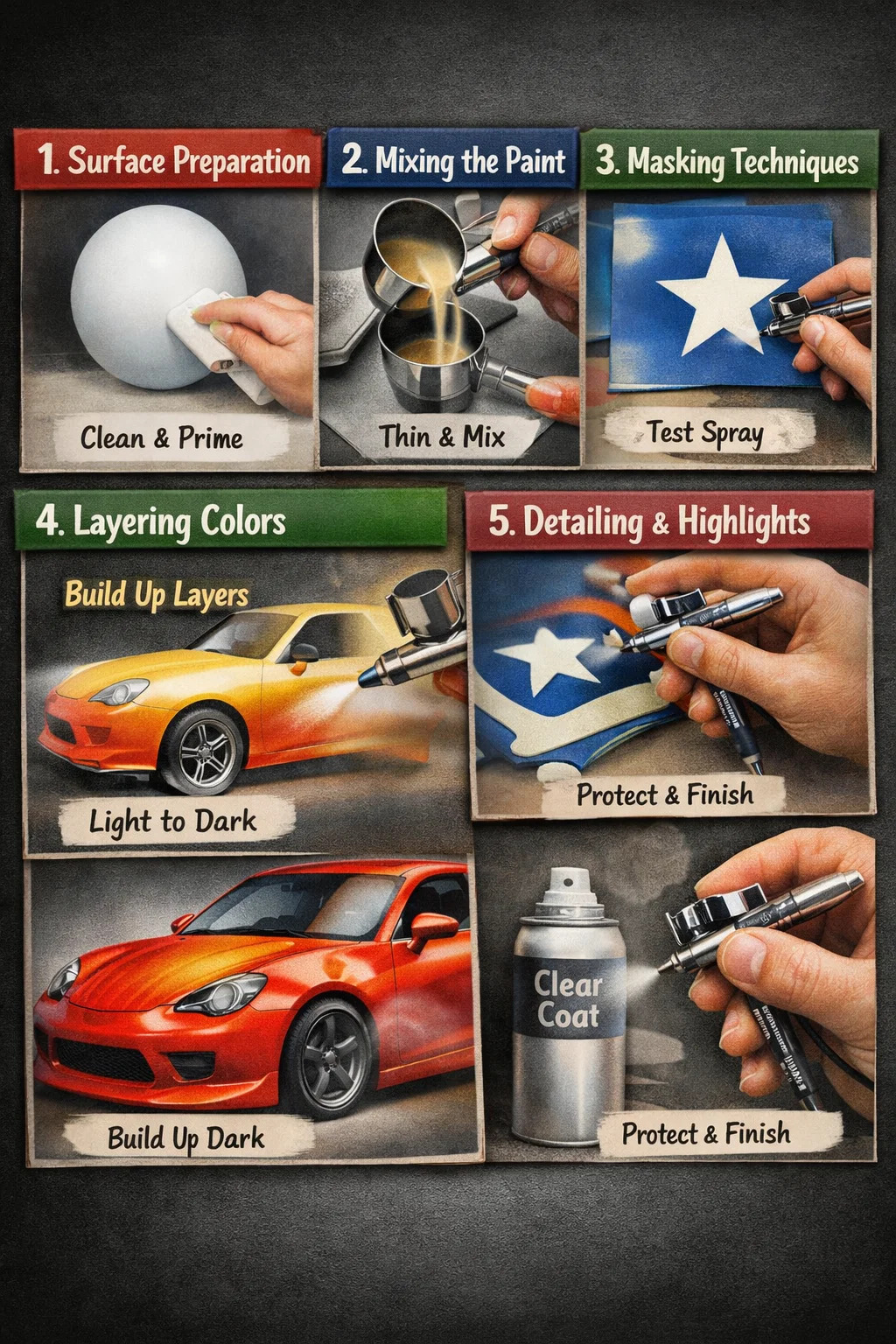 完了までの主な手順は次のとおりです。 エアブラシ 絵画: